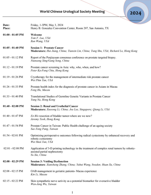 16th Annual Conference of the World Chinese Urological Society: Reunion and Sharing Leading Advances in Global Chinese Urology